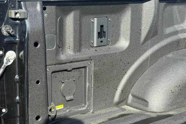 Abțibild inscripționat “F-150”, de culoare negru mat, pe oblonul benei