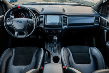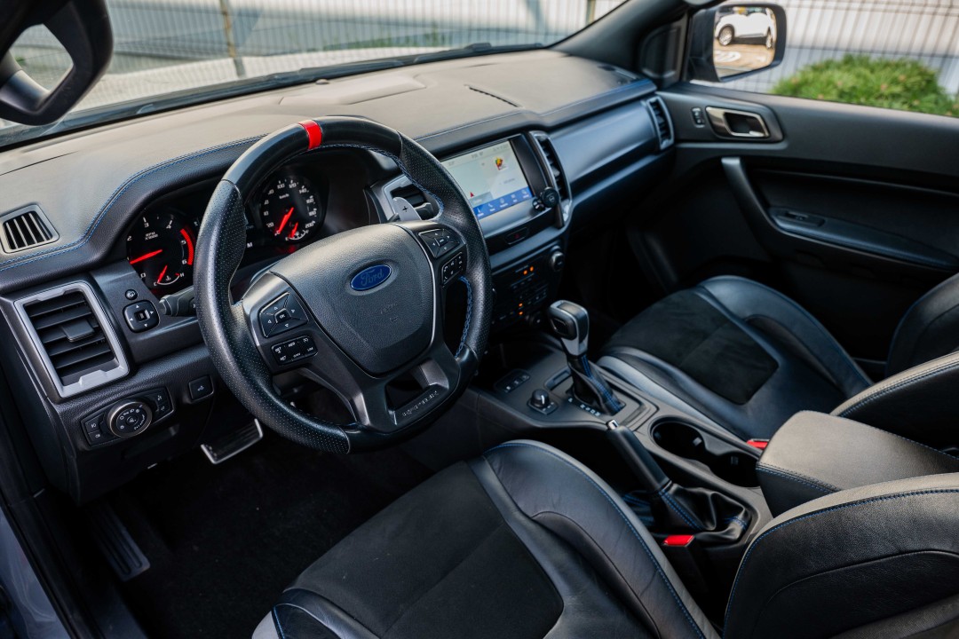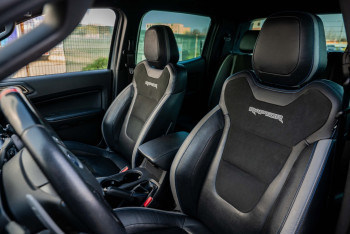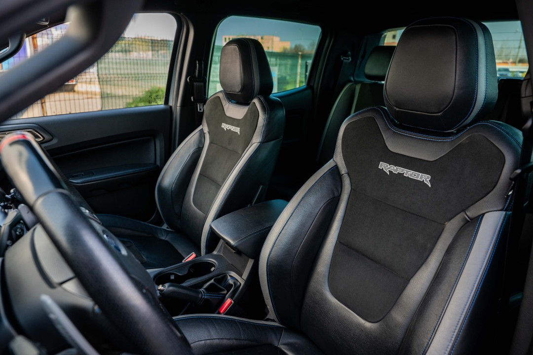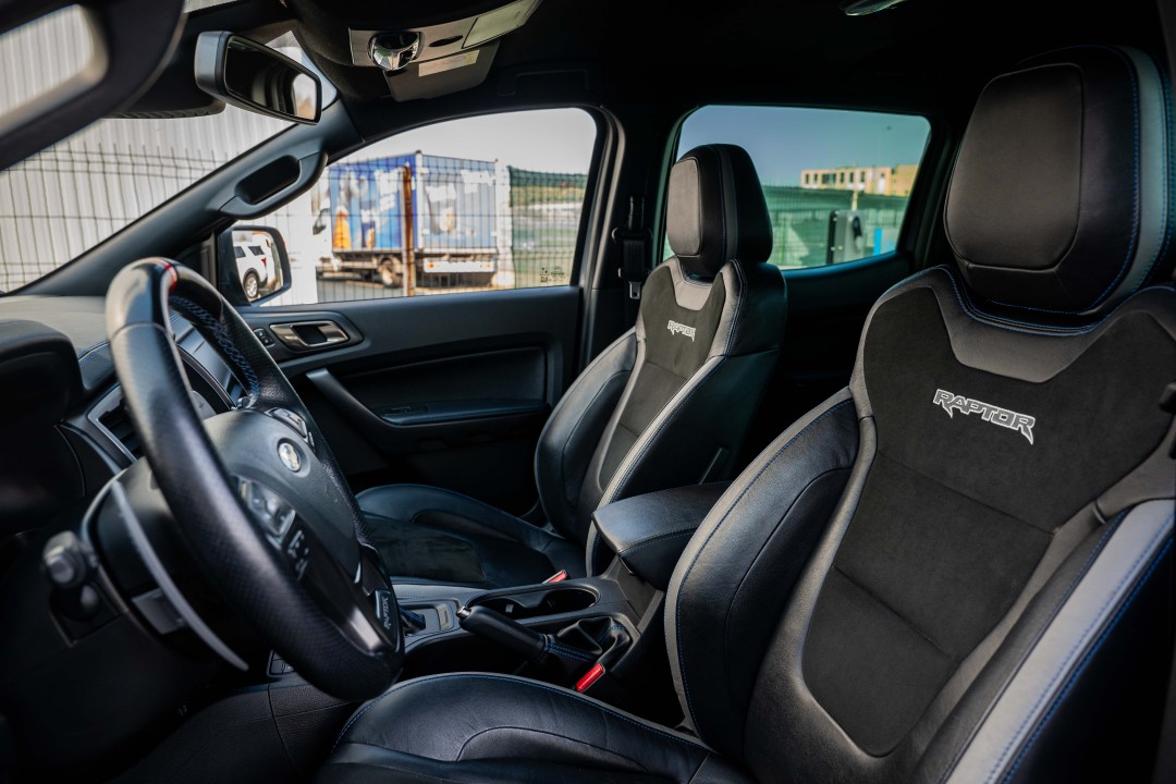 Pachet scaune față 53 (Scaune electrice încălzite, din piele premium (cu logo-ul Raptor) pentru șofer și pasager, Buzunar pentru hartă pe spatele scaunului șoferului, Scaun șofer reglabil electric pe 8 direcţii, Avertizare centuri de siguranță șofer/pasager, Mânere de sprijin montate pe plafon)