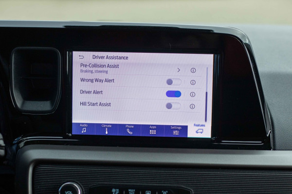 Asistență Ford Co-Pilot 360 (geamuri electrice față, funcție "1 touch down" (ușă șofer), asistență pre-coliziune 1.5, FCW, PIB, ESA, asistență inteligentă pentru viteză ISA, pilot automat, sistem ajutor menținere bandă de rulare LKA, LDW, sistem recunoaștere indicatoare de viteză TSR, senzori de parcare spate, fază lungă cu comutare automată)